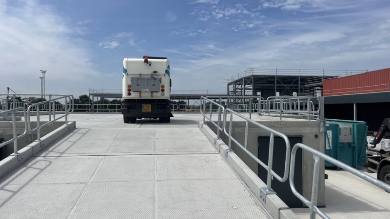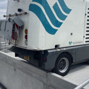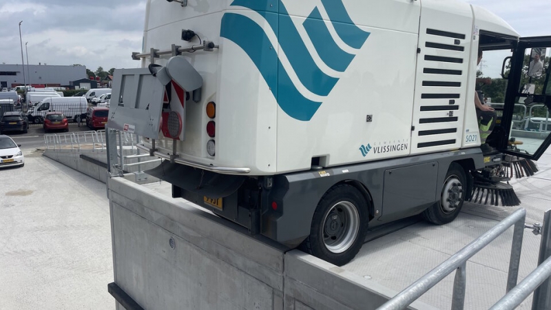 Die Abwurframpe wird vom Team des städtischen Betriebshofs genutzt, das in der Gemeinde Vlissingen (NL) für die Straßeninstandhaltung, Kanalisation, Müllabfuhr und Grünflächenpflege zuständig ist. Dieses Abwurframpenpodest ermöglicht es dem Team, das aus 80 Mitarbeitern besteht, Abfälle aus dem öffentlichen Raum getrennt zu sammeln und zu lagern. Das Podest bietet Platz für sechs 40m3-Container und ein Auffangbecken für die Entleerung der Kehrmaschinen. Wegen des Gewichts der Kehrmaschinen ist das Podest besonders stabil: Es kann mit bis zu 12 Tonnen belastet werden.