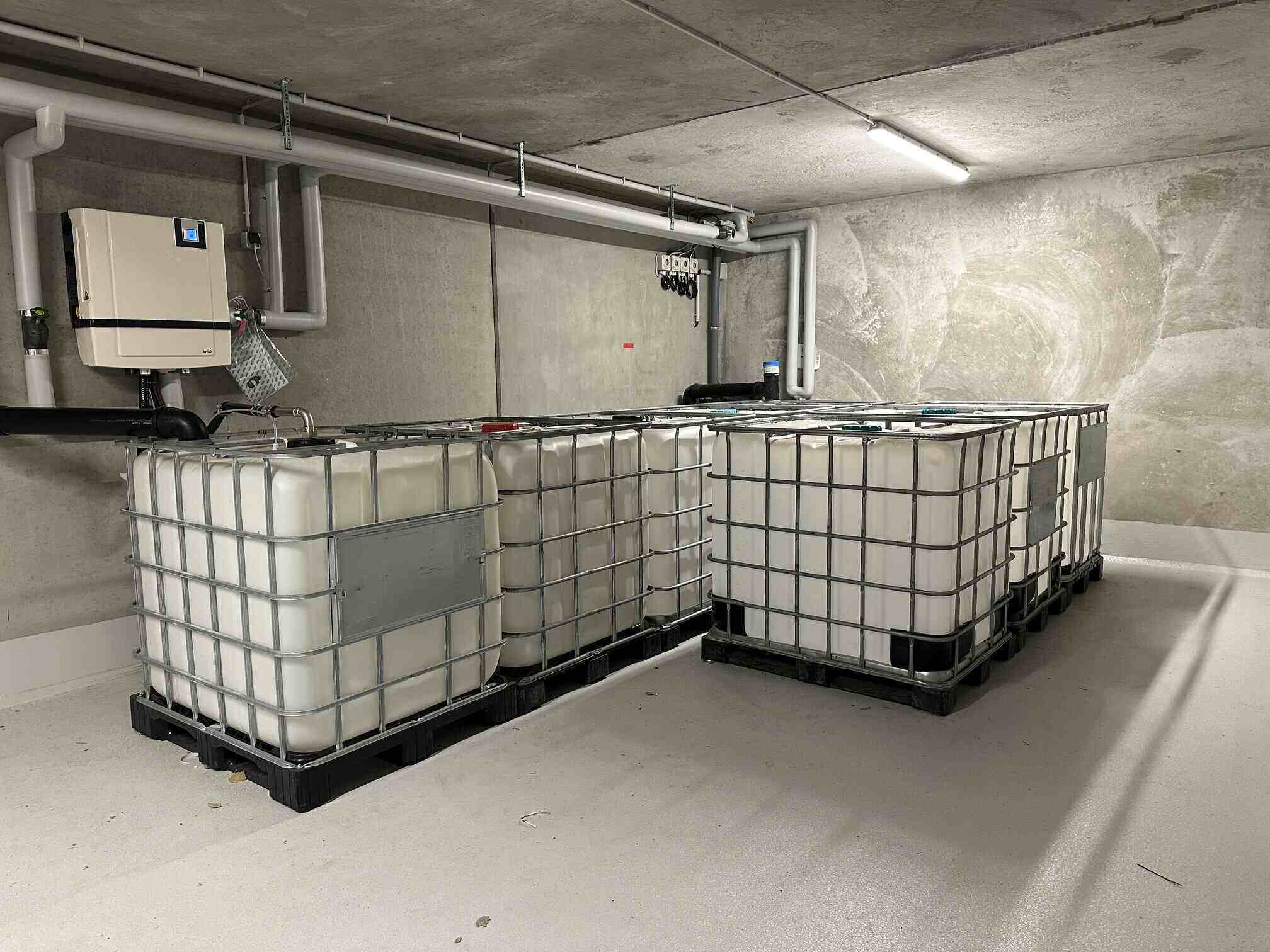 Die Anliefernden fahren mit ihren Fahrzeugen auf einer Rampe ins erste Obergeschoss, von wo aus sie ihre Abfälle in Container auf Erdgeschosshöhe entsorgen. Der so entstehende Platz unter dem Podest bietet Platz für Aufenthaltsräume, Sanitäreinrichtungen und eine Kantine für das Personal. Zusätzlich entstehen Lagerflächen, die flexibel genutzt werden können.
